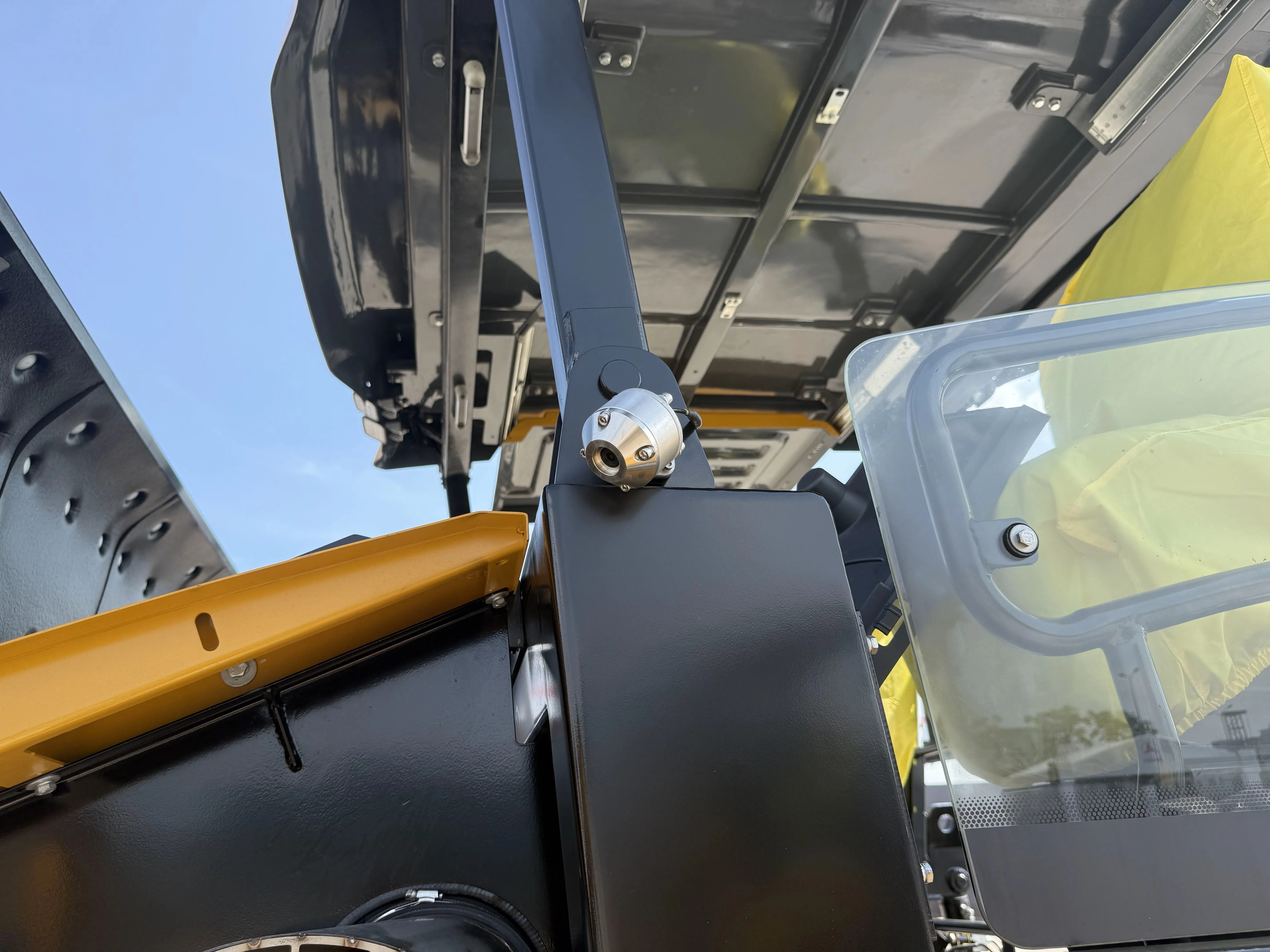 Выдвигаемая площадка машиниста для оптимального обзора рабочей зоны особенно важна при работе на российских объектах с их специфическими требованиями к контролю качества и безопасности. Передняя и боковая ветрозащита адаптированы под российские климатические условия.