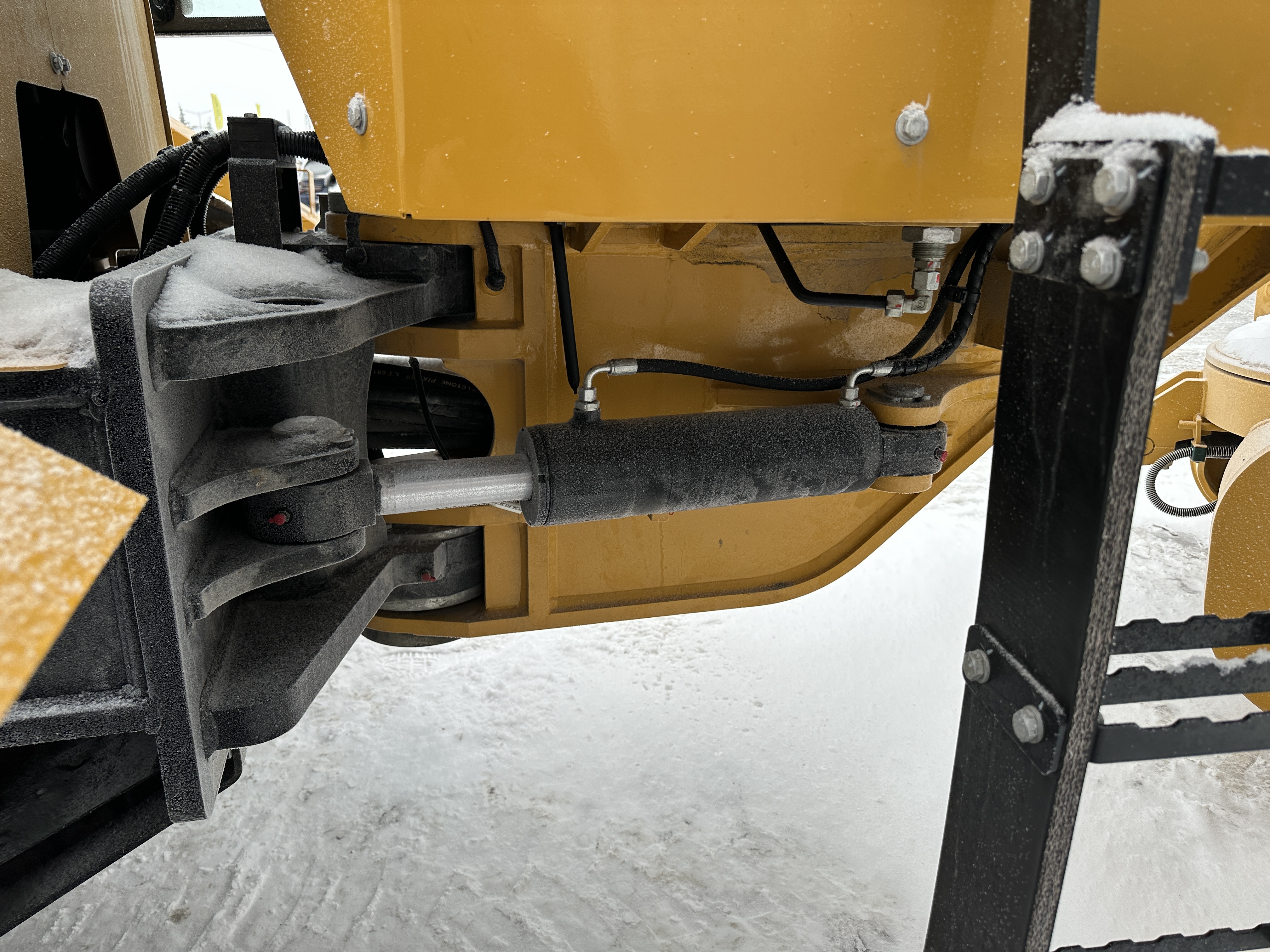 Передний отвал имеет габариты 3660 мм по ширине и 620 мм по высоте, что обеспечивает охват значительных участков за один проход техники. Показатель максимального заглубления составляет 715 мм, а высота подъема достигает 505 мм. Конструкция отвала включает полный набор регулировок: